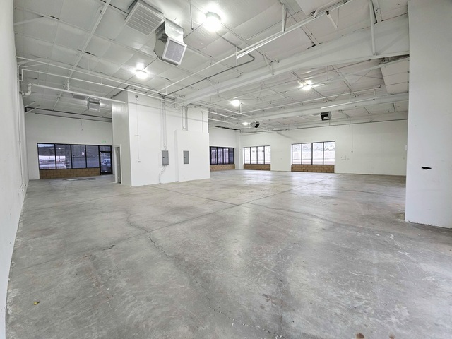 Commercial Flex Space Corner Suite #1-2 offers nearly 4,100 sq. ft. of Open Floor Plan space with beautiful Bay Windows visible from High-Traffic Highway 95. Dual Front Entrances through office-style glass man-doors, and two Large Roll-Up Warehouse style doors 12'h x 11'w each. LED Lighting throughout the suites. ADA bathroom and Storage Closet.